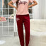 Tea Pink Sleep Shirt With Mahroon Sleep Print Trouser (FA-501)